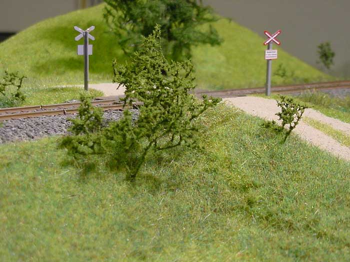 einem kleinen Bahnübergang. Als Auflockerung der sonst eintönig wirkenden